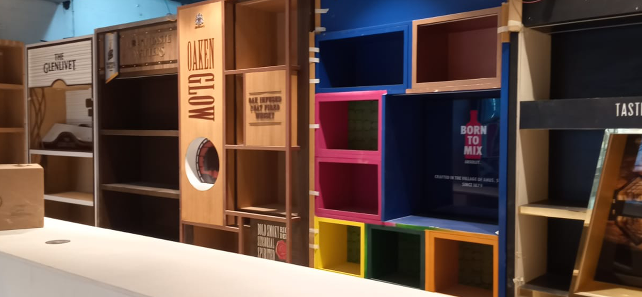 There was a lot of close coordination to make sure that the interior work matched Diageo's branding perfectly. The racks and counters that were provided were used to plan all of the services and finishes.