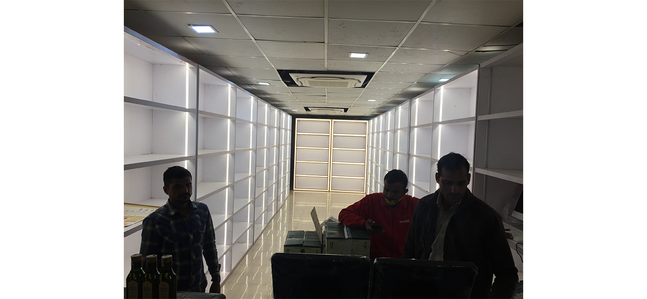 This is a short-facade store with a narrow front space used for bottle displays and a storage area at the back. Because of the limited frontage, we planned the store as an over-the-counter sales model. At the same time, we made provision for self-service sales during non-peak hours, which was well received by many customers and appreciated as a thoughtful initiative.