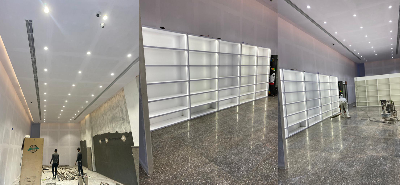 While civil and wet interior works were ongoing firefighting systems ducting and air-conditioning were executed in parallel Once the base work was completed racks counters and signage were installed quickly to make the store operational.