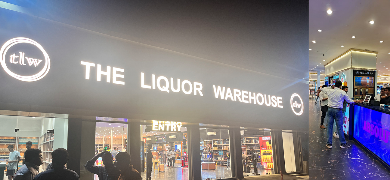 Once the sign for THE LIQUOR WAREHOUSE was up, it set the style for the whole store. After that, all the interiors, layouts, and finishes matched the brand's style.
